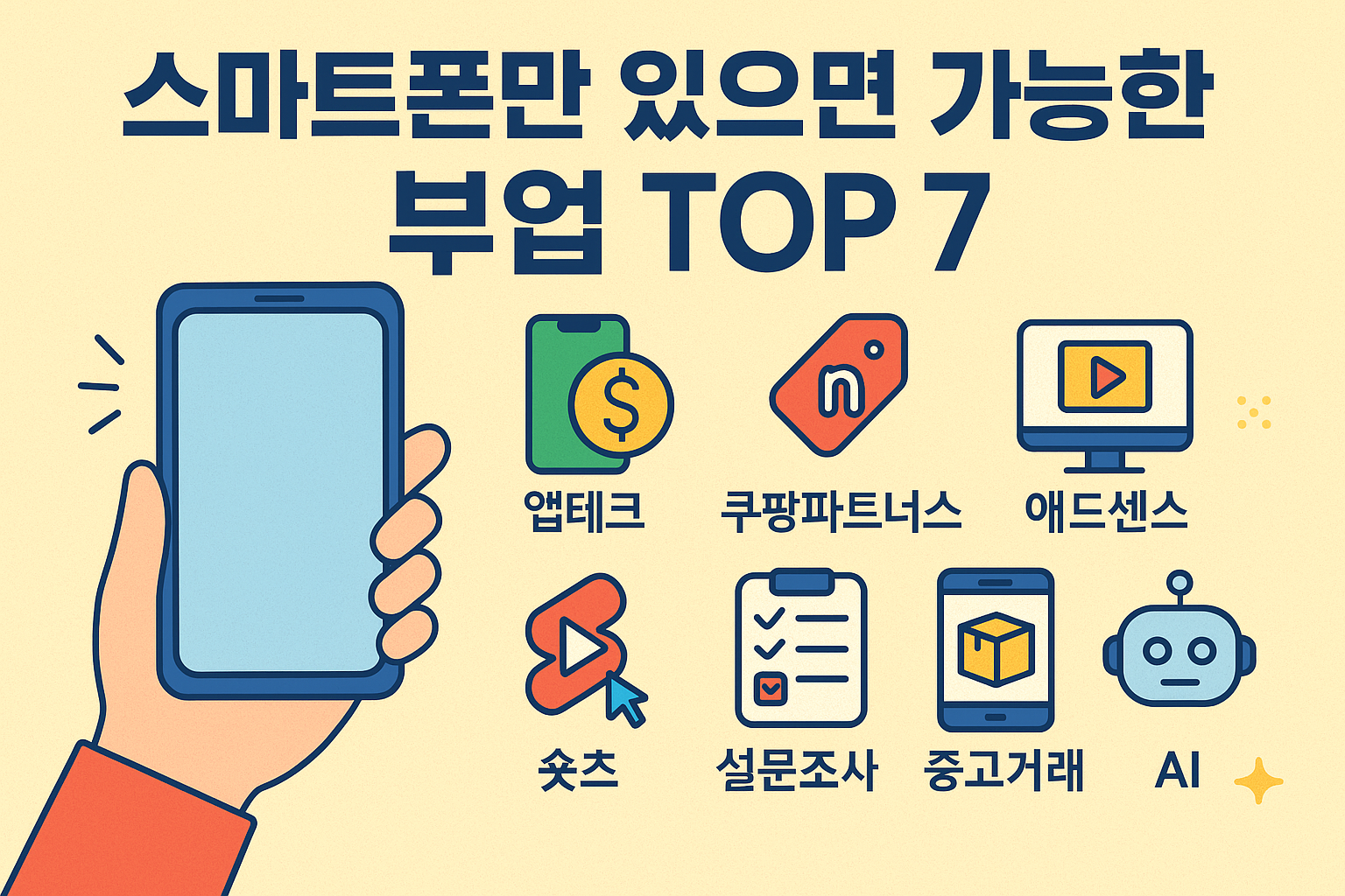 그래서 오늘은 스마트폰만 있으면 누구나 시작할 수 있는 부업 TOP7을 정리해드리겠습니다.