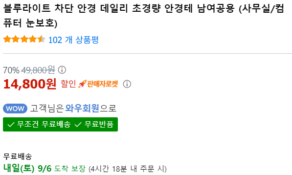 현재 별점 4.6점, 리뷰 102개를 가진 블루라이트 차단 안경 데일리 초경량 안경테 남여공용 (사무실/컴퓨터 눈보호)! 지금 쿠팡에서 더 저렴하고 다양한 안경테 제품들을 확인해보세요.